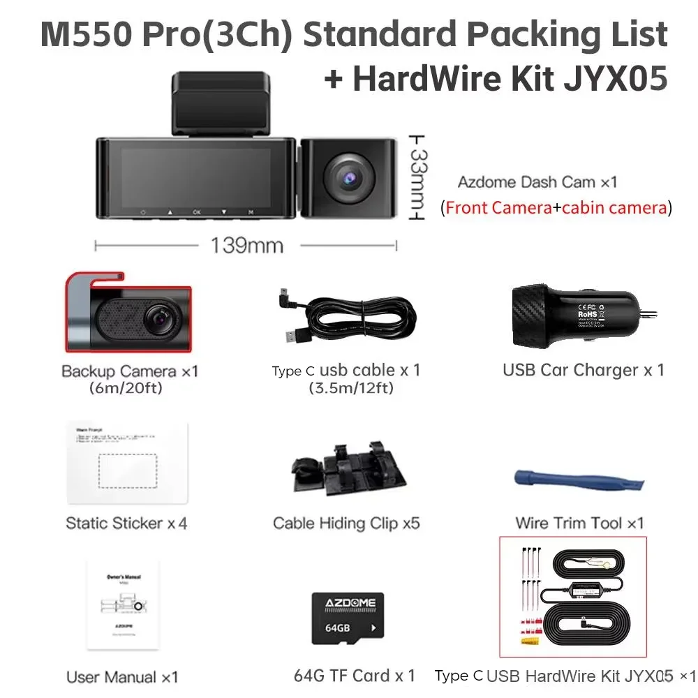 1 * كاميرا داش M550 Pro (3Ch).