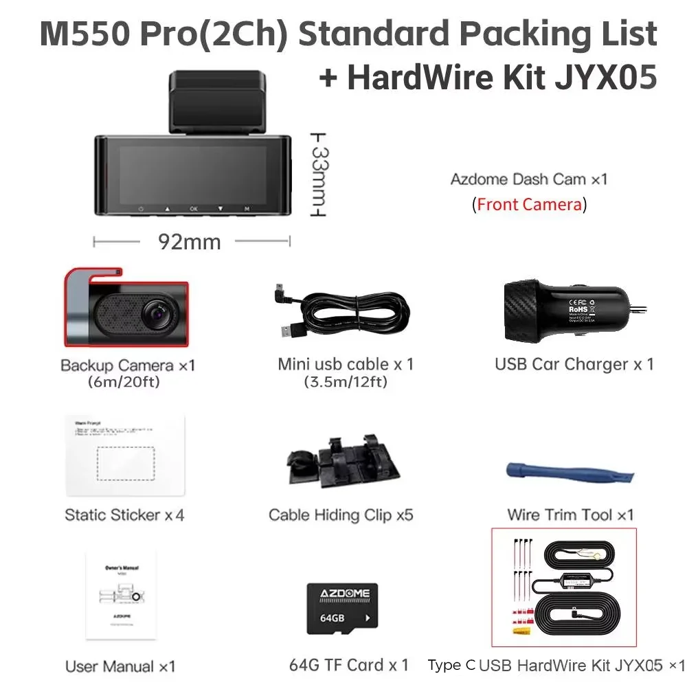 1 * كاميرا داش M550 Pro (2Ch).
