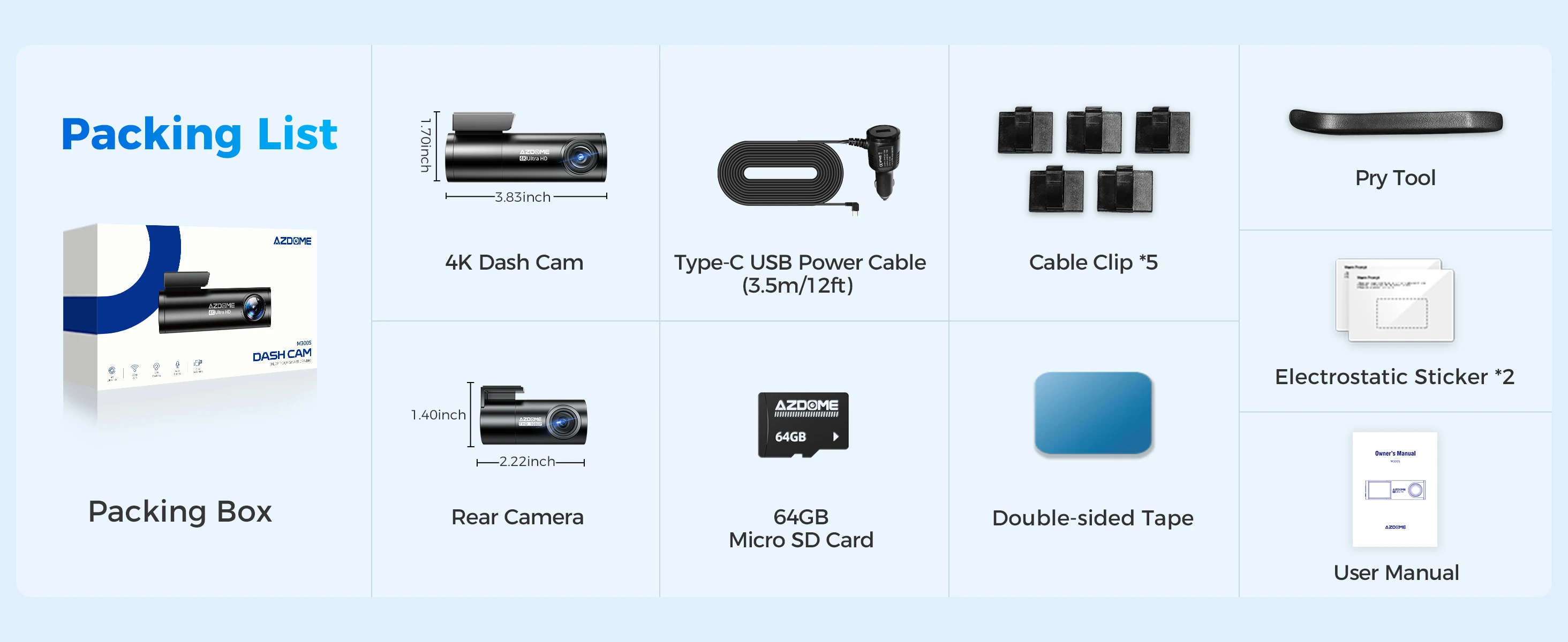 AZDOME داش كام M300S 4K + 1080P المزدوج داش سيارة كاميرا المدمج في 5.8 جيجا هرتز واي فاي نظام تحديد المواقع جهاز تسجيل فيديو رقمي للسيارات 24 ساعة وضع وقوف السيارات للرؤية الليلية الصندوق الأسود