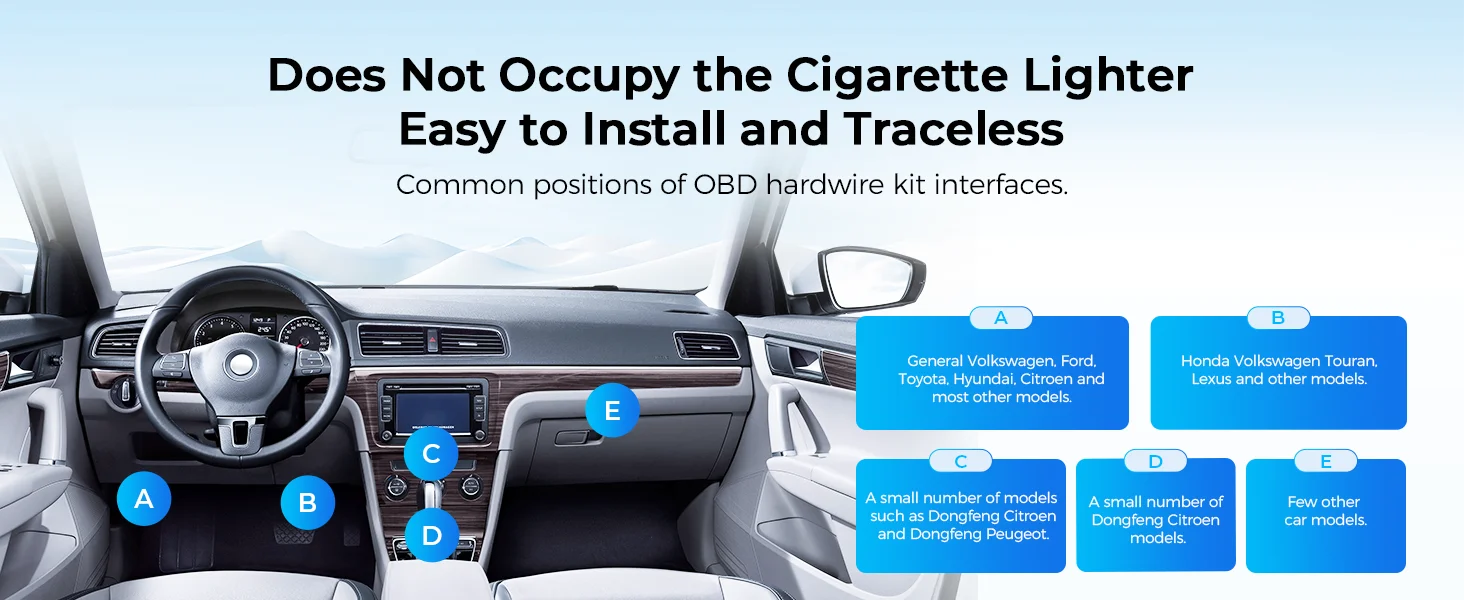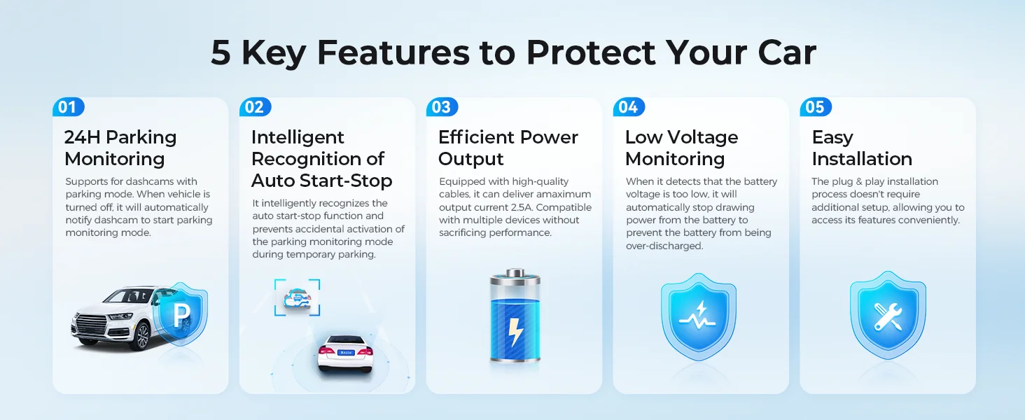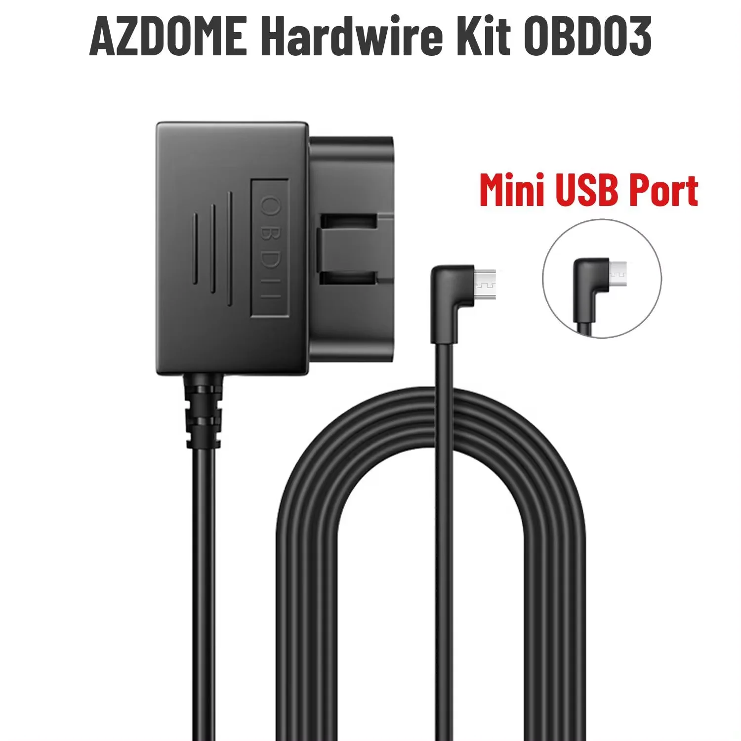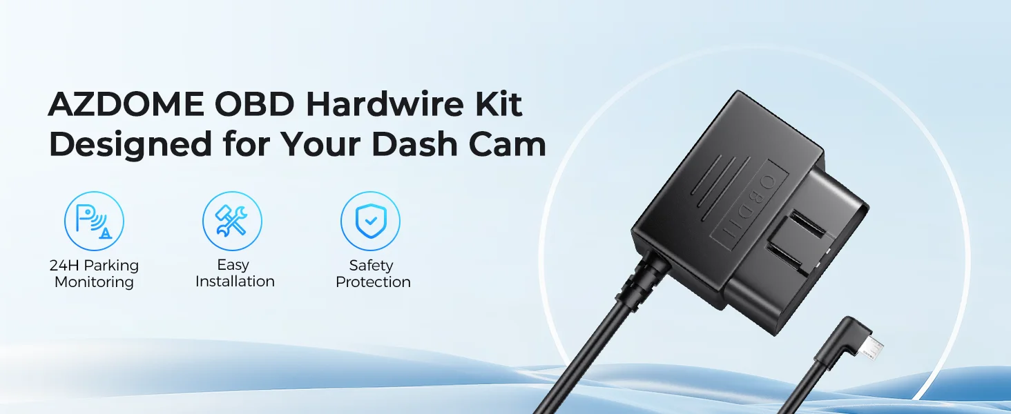 كيبل AZDOME OBD لتشغيل الداش كام ومراقبة الوقوف 24H يدعم Mini USB وUSB-C متوافق مع AZDOME M550 وM300S