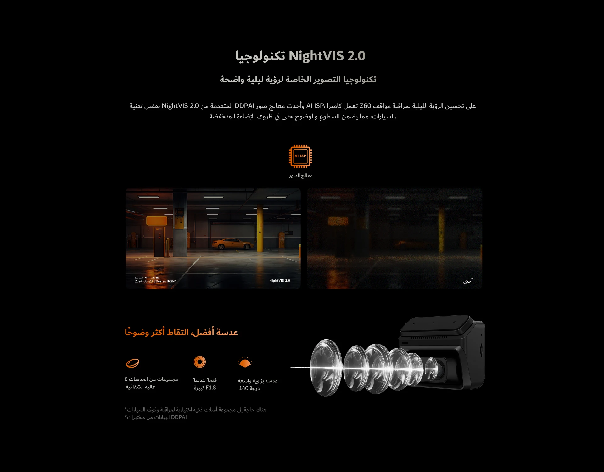 Z60 يعزز الرؤية الليلية لمراقبة وقوف السيارات ، وضمان السطوع والوضوح حتى في ظروف الإضاءة المنخفضة.