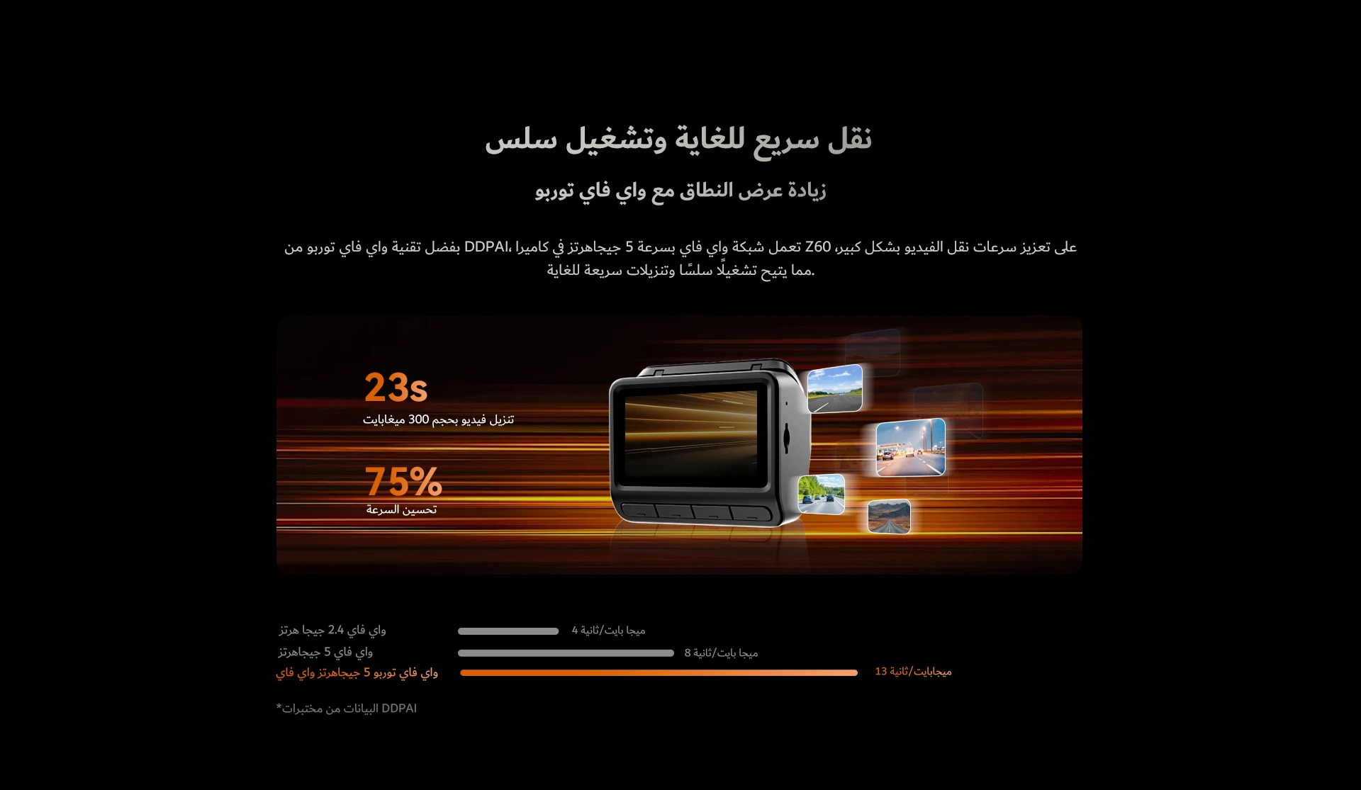 مدعوم بتقنية wi-fi Turbo من DDPAl ، يعمل wi-fi من z60 بسرعة 5 جيجاهرتز بشكل كبير على تشغيل الفيديو ، مما يتيح التشغيل السلس والتنزيلات بسرعة البرق.