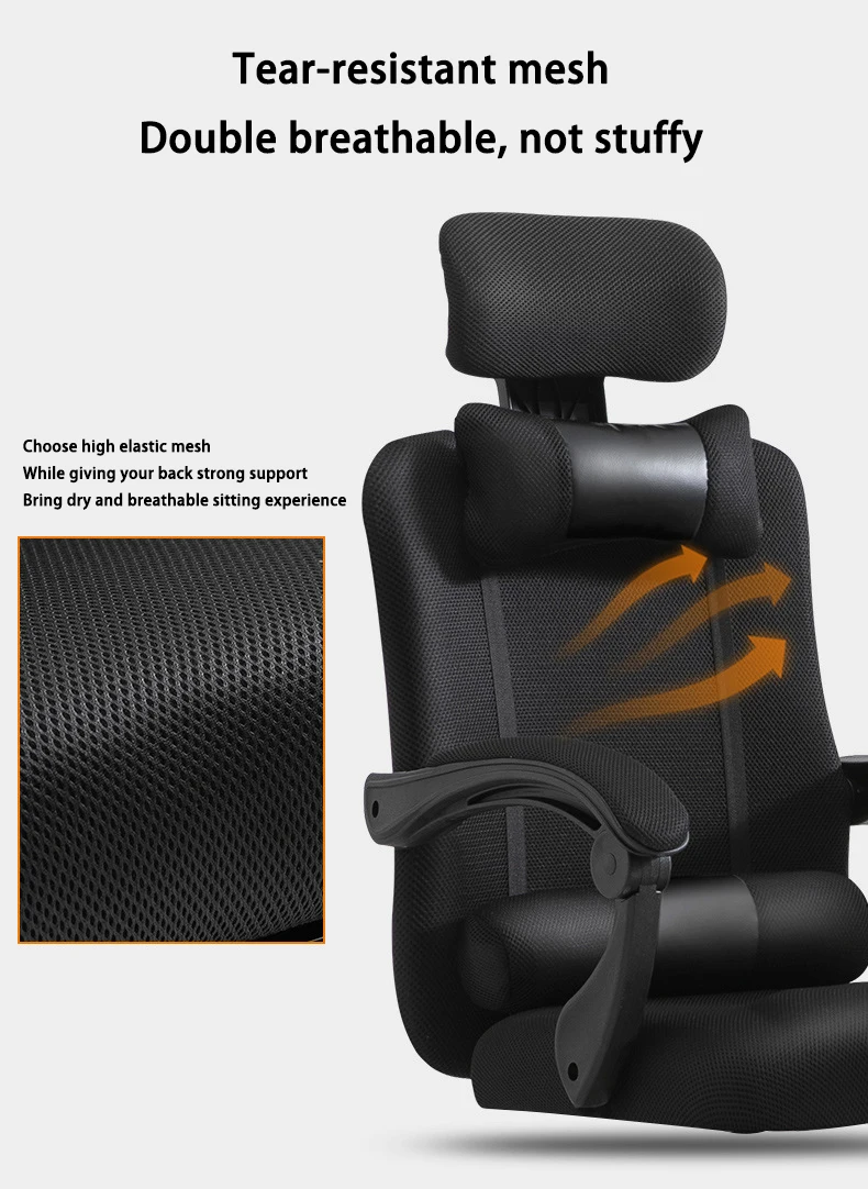 كرسي AnneFish الشبكي | مريح للمكتب والألعاب | دعم قطني ومسند قدمين