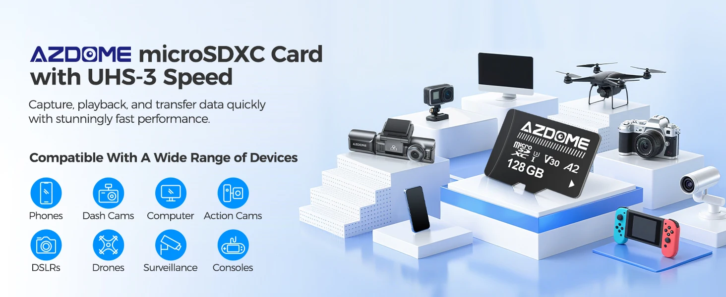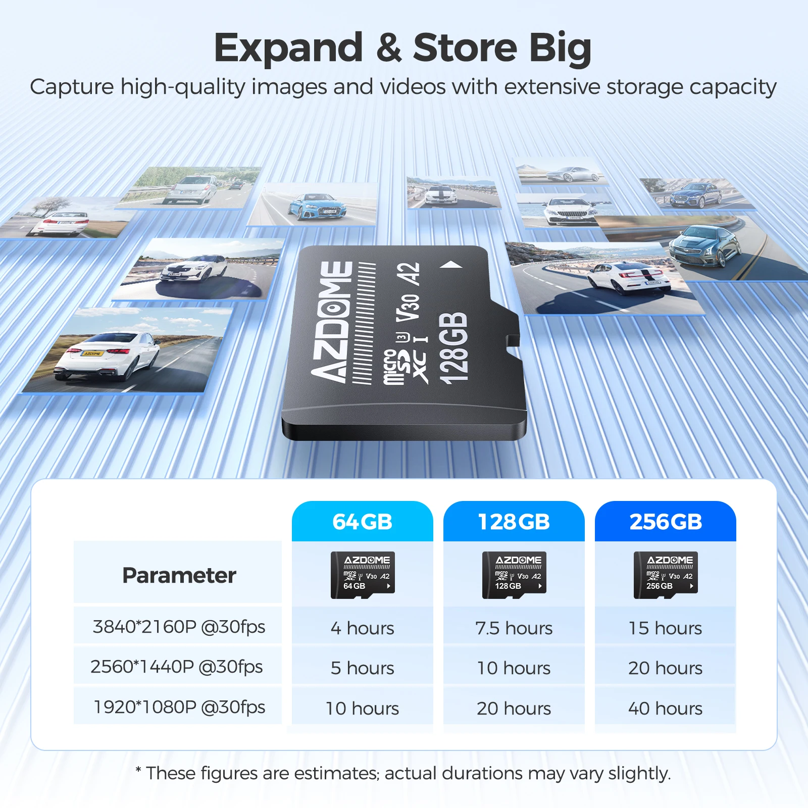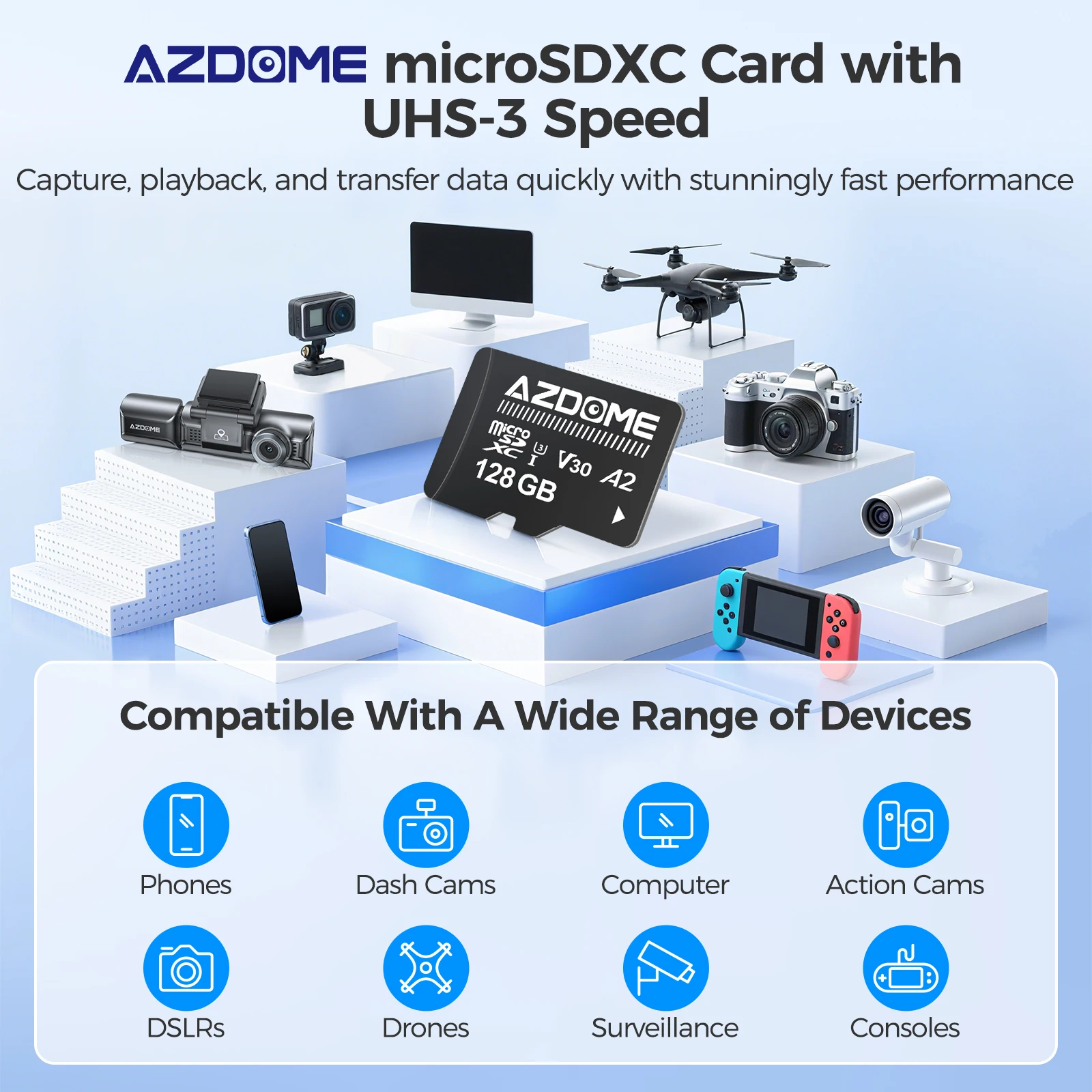 قطعة بطاقة AZDOME Micro SD الأصلية 256 جيجابايت 128 جيجابايت بطاقة ذاكرة عالية السرعة لمحولات كاميرا داش فئة 10 U3