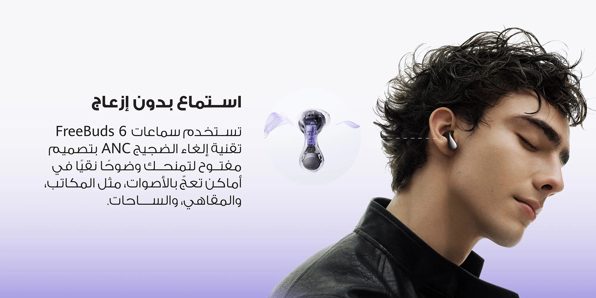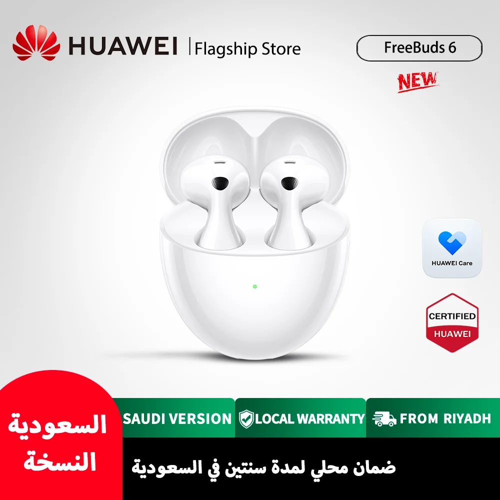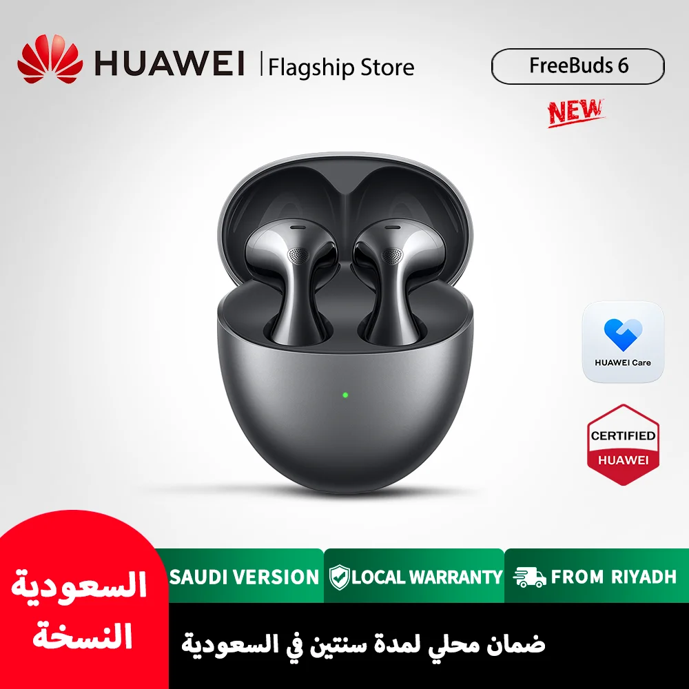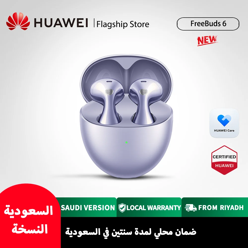سماعات HUAWEI FreeBuds 6 لاسلكية - عزل ضوضاء وضمان محلي (السعودية)