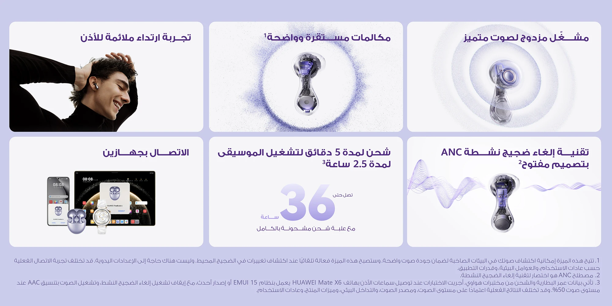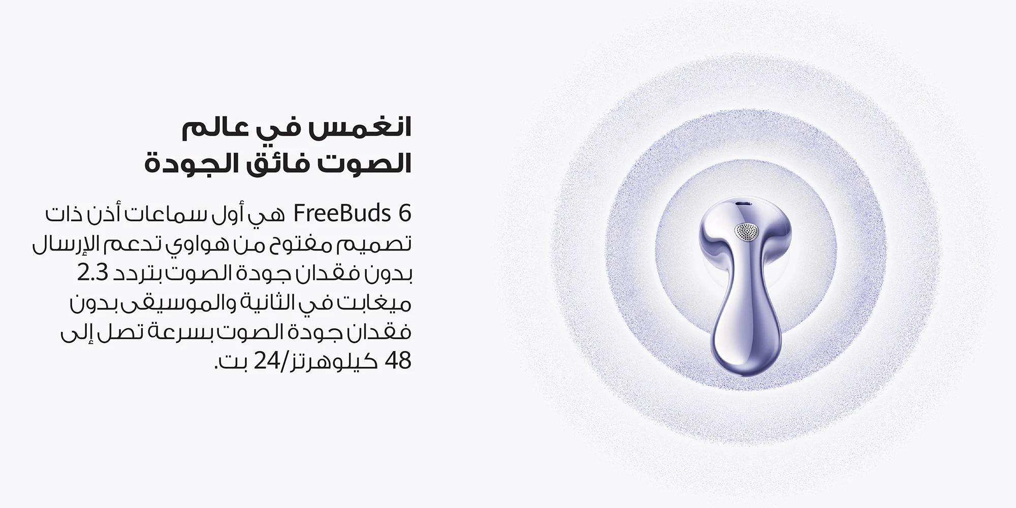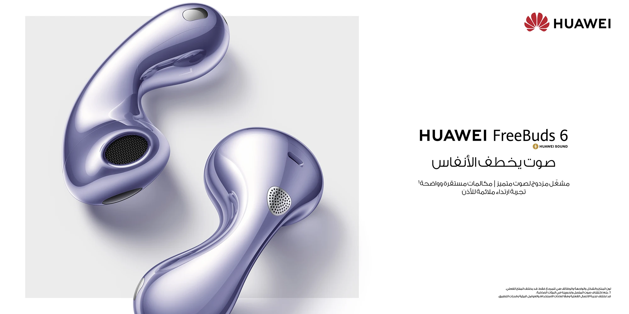 سماعات HUAWEI FreeBuds 6 لاسلكية - عزل ضوضاء وضمان محلي (السعودية)